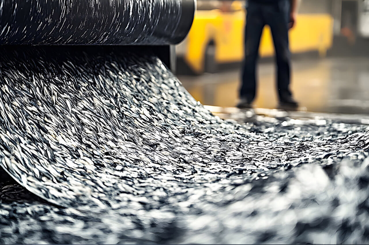 Die heiße und zähflüssige Bitumen wird zur Veränderung der Materialeigenschaften mit Polymeren gemischt. Bei und nach dem Vermischen kommt es mitunter zu Verklumpungen der Polymere, die beim Passieren der Flachdüsen für den Materialauftrag auf das Trägermaterial zu Verstopfungen führen. Dadurch kommt es zu Störungen im Fluss der Emulsion und zu fehlerhaften Produkten. Abhilfe schafft ein speziell für diesen Anwendungsfall modifizierter, selbstreinigender Contec Kantenspaltfilter mit Heizmantel. Dieser wurde so konstruiert, dass Wartung und Reinigung bei voller Betriebstemperatur einfach von oben erfolgen können.